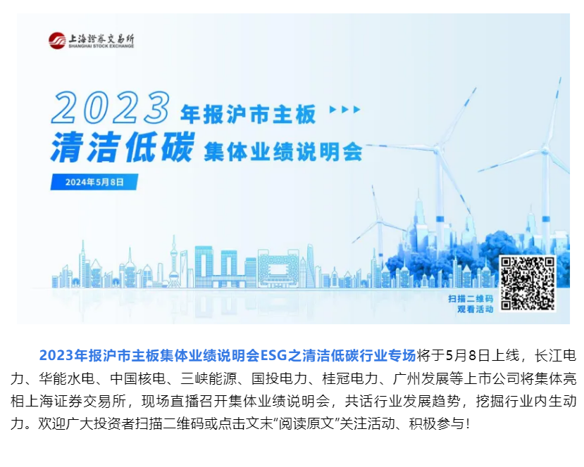 【上交所】活动预告 _ 2023年报沪市主板集体业绩说明会——ESG之清洁低碳行业专场