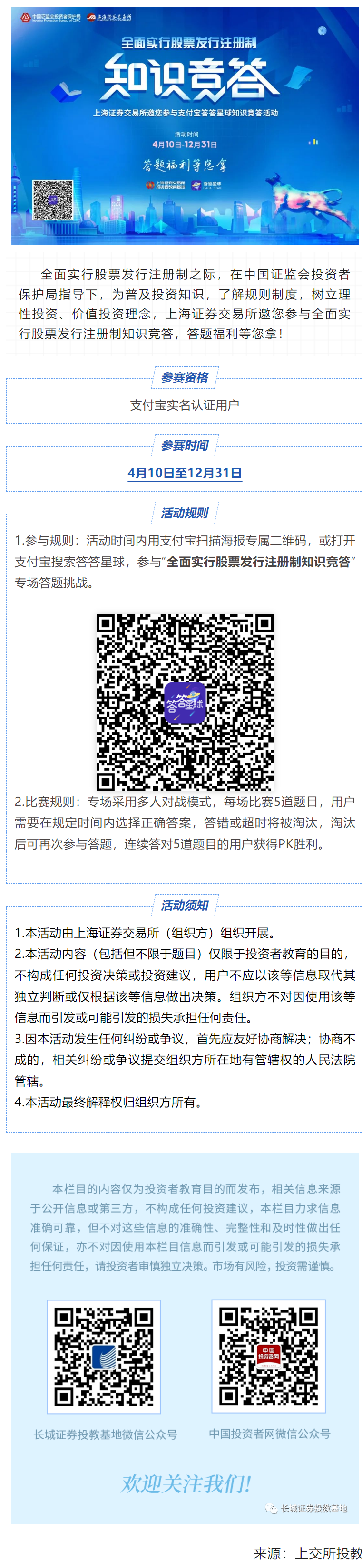 【上交所投教】注册制|全面实行股票发行注册制知识竞答火热进行中